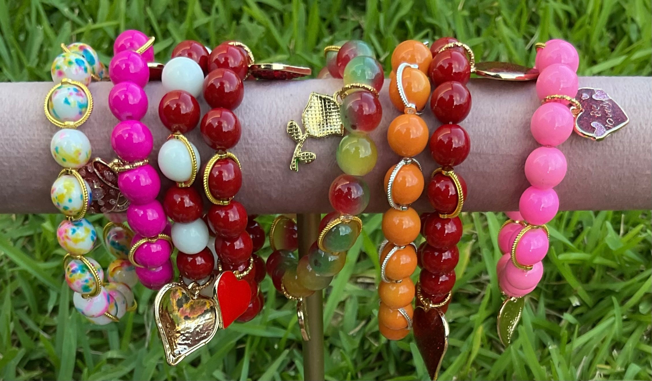 This bracelet is made of Polymer Clay Beads, its actually one of my favorite Bracelet. I am two time Cancer Survivor, so I wanted to implement some inspirational words in my business.